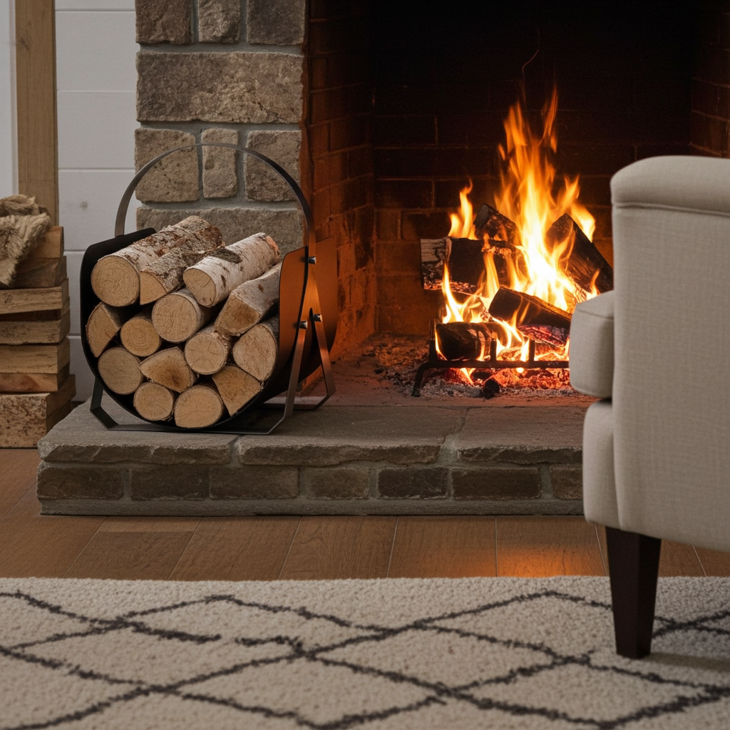 Koš na dřevo AERO HOLD 3 – elegantní kulatý koš s praktickými úchyty