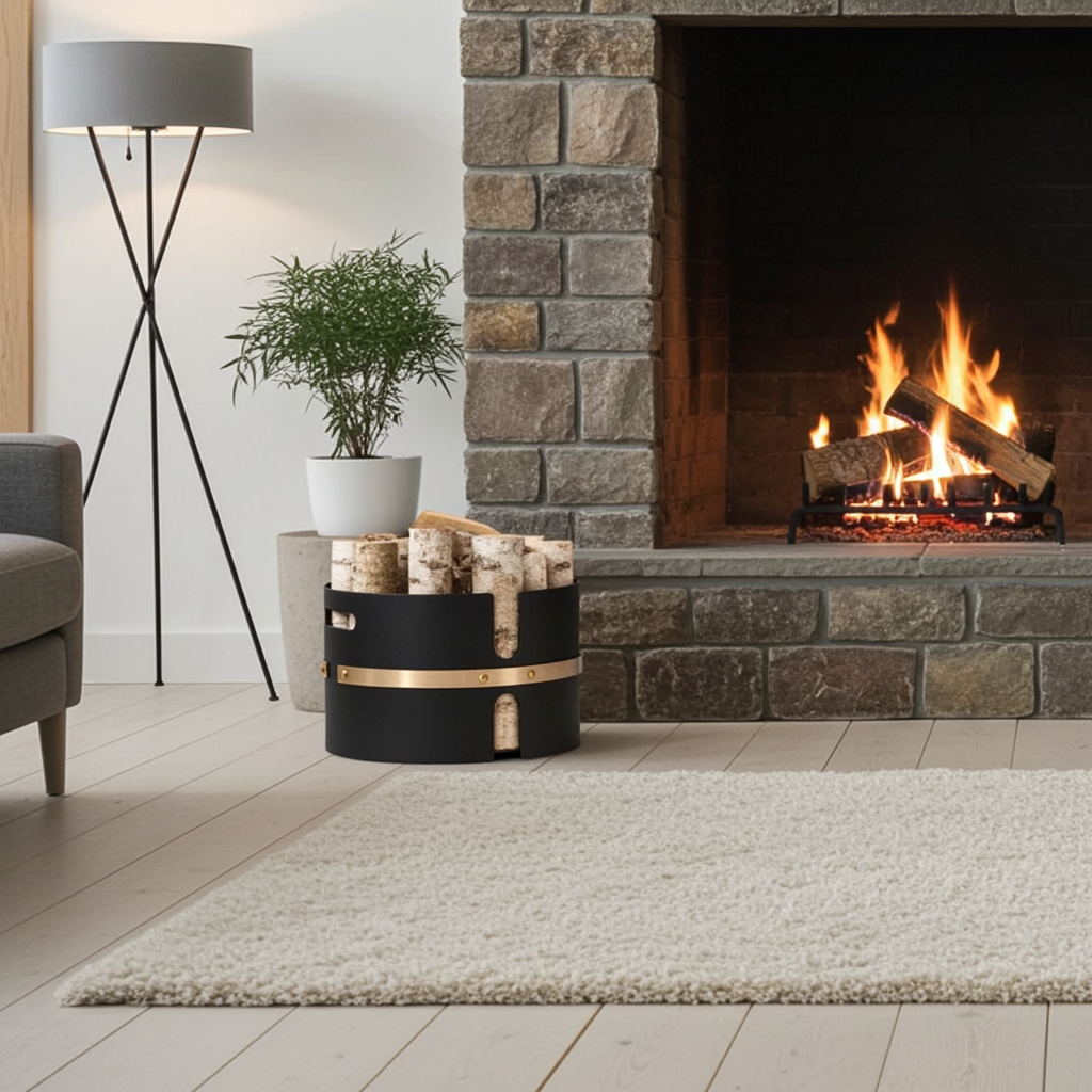 Kulatý tvar a pohodlné úchyty umožňují snadné přenášení polen ke krbu či kamnům. Díky modernímu provedení v černé barvě se koš hodí do klasických i loftových interiérů, kde poslouží nejen jako praktický pomocník, ale i jako designový doplněk.